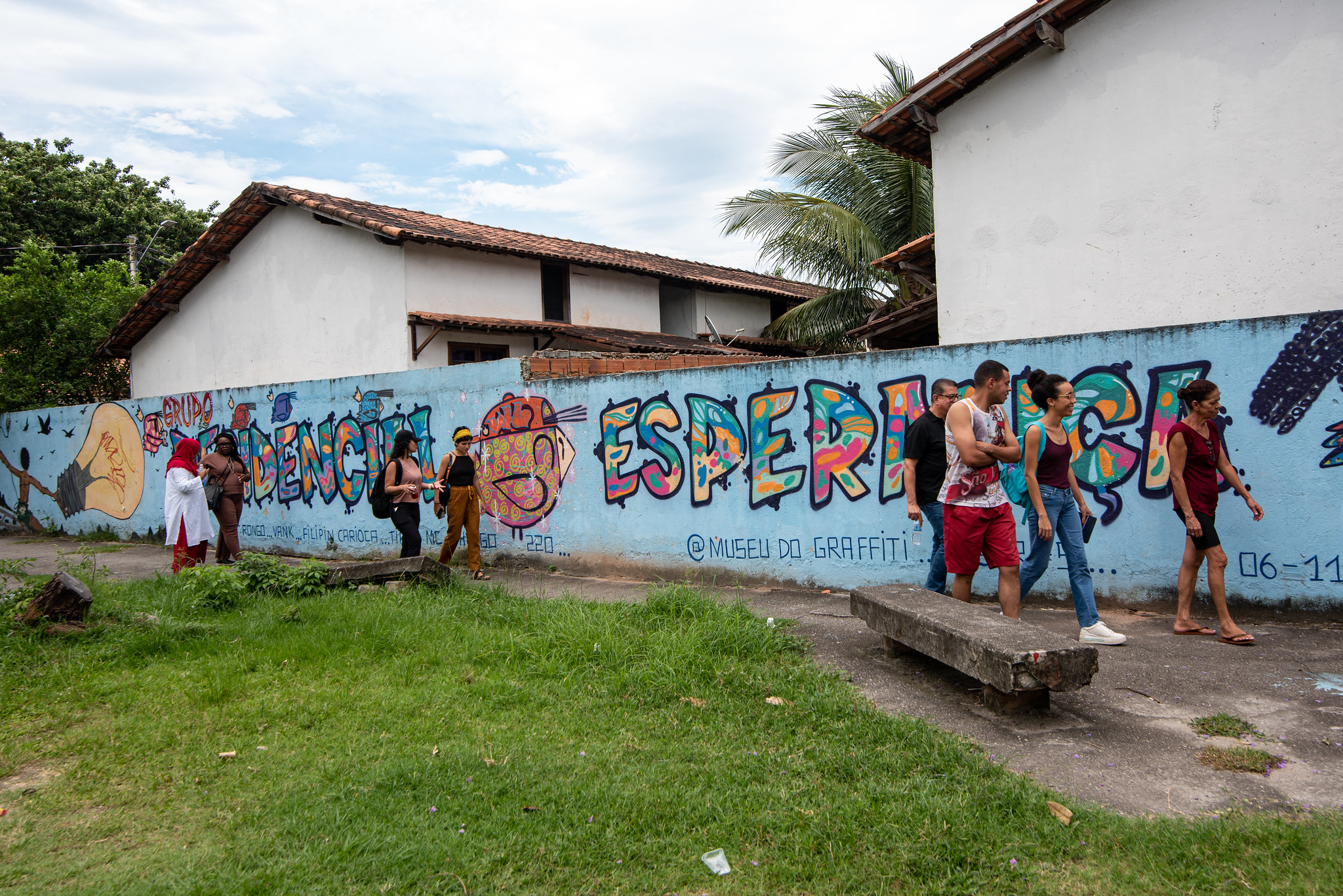 Le lendemain, les intervenant-e-s internationaux/ales ont visité l’une des communautés pilotes du projet à Rio, Grupo Esperança, et ont échangé avec les résident-e-s sur l’histoire de la lutte de la communauté et les perspectives positives que le CLT apporte au groupe.