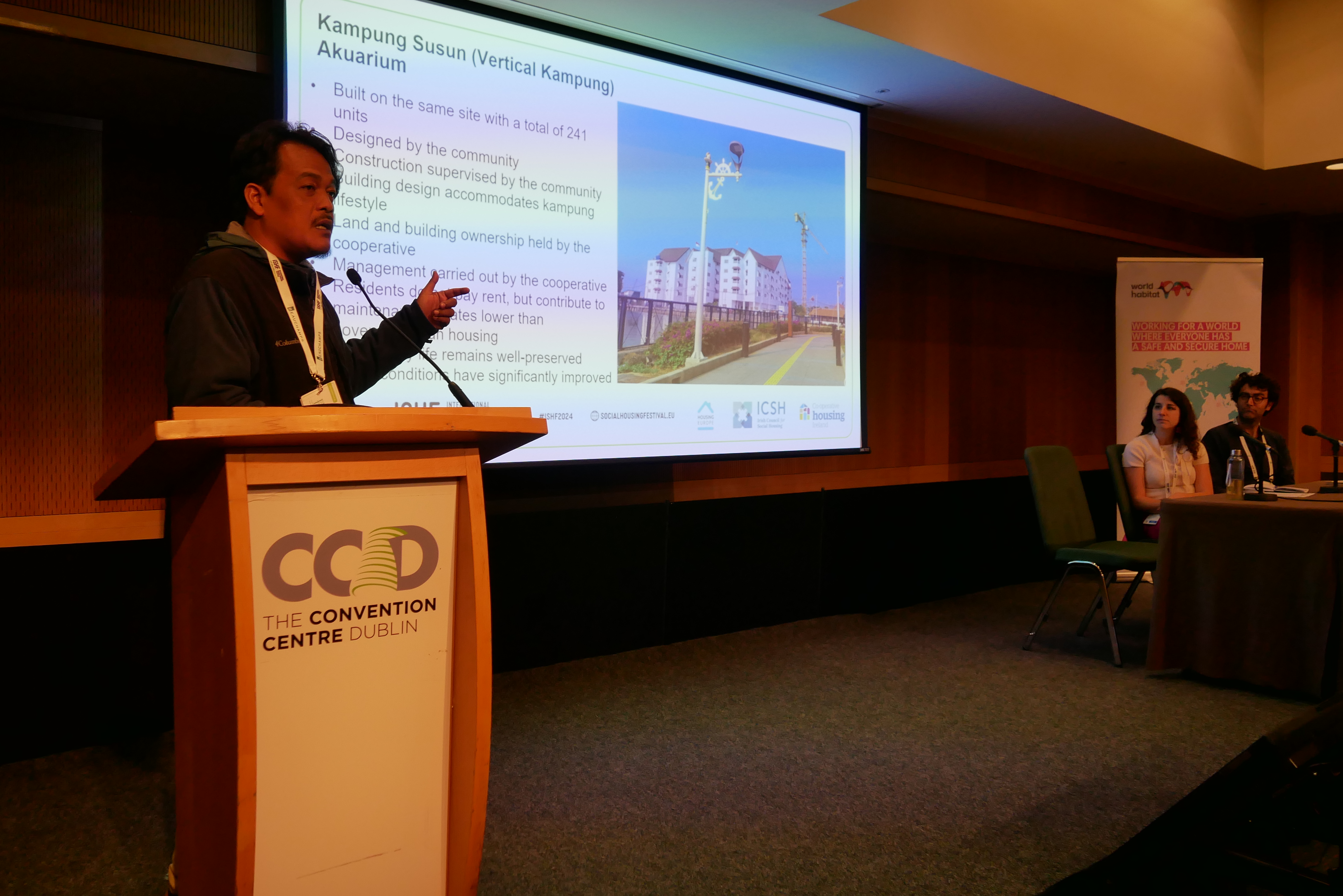 Un séminaire international sur l’autonomisation des communautés, avec Urban Poor Consortium (Indonésie), un documentaire de POCAA (Bangladesh), World Habitat et l’IIED. Les participants ont échangé leurs expériences sur l’impact social, le financement innovant et les cadres politiques favorables, offrant des outils et des idées pour renforcer la collaboration et maintenir les personnes et les communautés au cœur des stratégies de logement.