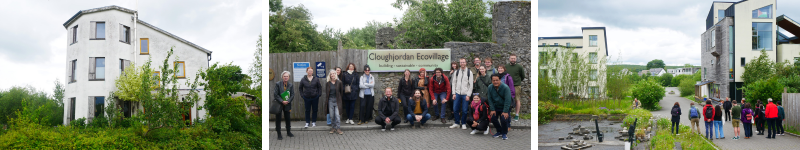 Le vendredi après-midi, urbaMonde a organisé une visite de terrain à Cloughjordan Ecovillage, avec le soutien des habitant·es et des militant·es locaux du logement. Ce quartier cherche à limiter l’impact sur les terres et la biodiversité locale grâce à des constructions denses, une circulation automobile limitée, un chauffage central, une production alimentaire locale et une économie de partage. Il s’agit de l’une des rares initiatives de CLH habitées en Irlande.